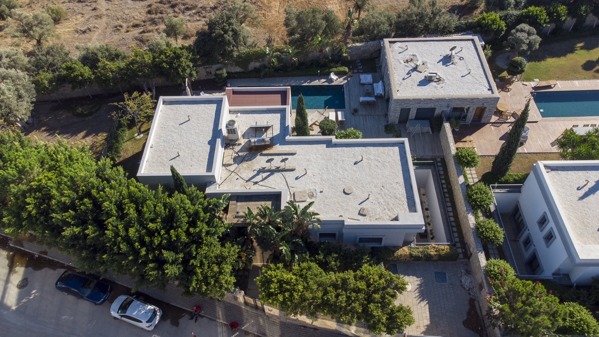 1.200 m² arsa üzerinde konumlanan villa, 350 m² net kullanım alanına sahiptir. Ayrıca 50 m² bağımsız misafir evi bulunmaktadır. Arsa çevresi yüksek duvarlar ve tel çitlerle çevrili olup 7/24 CCTV ile izlenmektedir. 2 araçlık kapalı otopark mevcuttur.