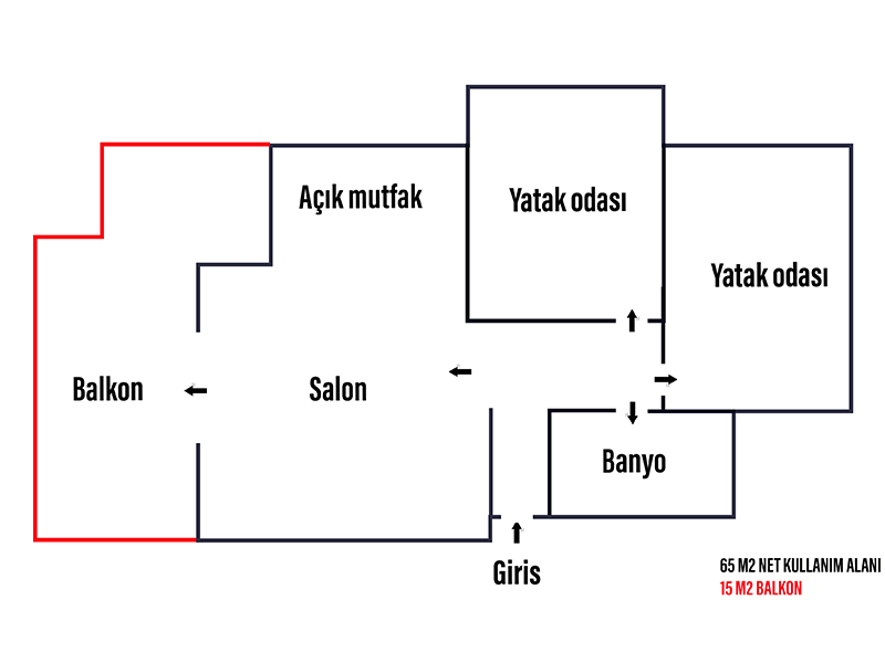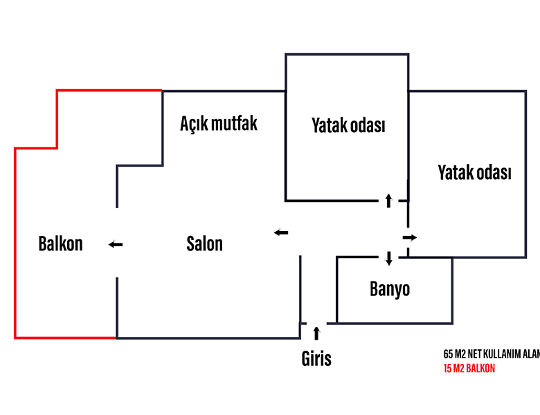 Orta katta bulunan daire; açık mutfaklı salon, geniş balkon, 2 yatak odası ve ortak banyo planına sahiptir. Salon ve 1 yatak odasında klima mevcuttur. Dairenin tüm duvar ve tavanları yeni boyanmış olup taşınmaya hazır durumdadır.