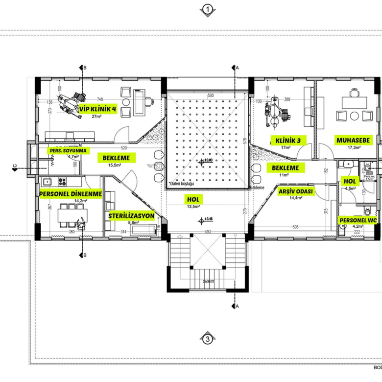 Klinik, güncel mevzuata uygun şekilde projelendirilmiş olup aktif ve faal olarak hizmet vermektedir. Hasta sirkülasyonu bulunan poliklinik, modern altyapısı ve işlevsel iç mekân planlamasıyla hekimlerin doğrudan faaliyete devam edebileceği niteliktedir.